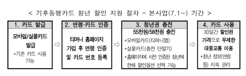 청년 기후동행카드는 일반 기후동행카드를 구입 후 티머니 홈페이지에서 연령인증 및 카드 등록을 한 후 사용하시면 됩니다.