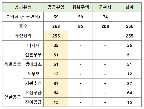 수방사 공공청약 유형별 공급 세대수