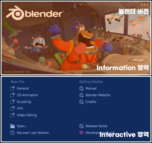 스플래시 화면 상단 오른쪽에 현재 설치된 블렌더 버전이 적혀있습니다.