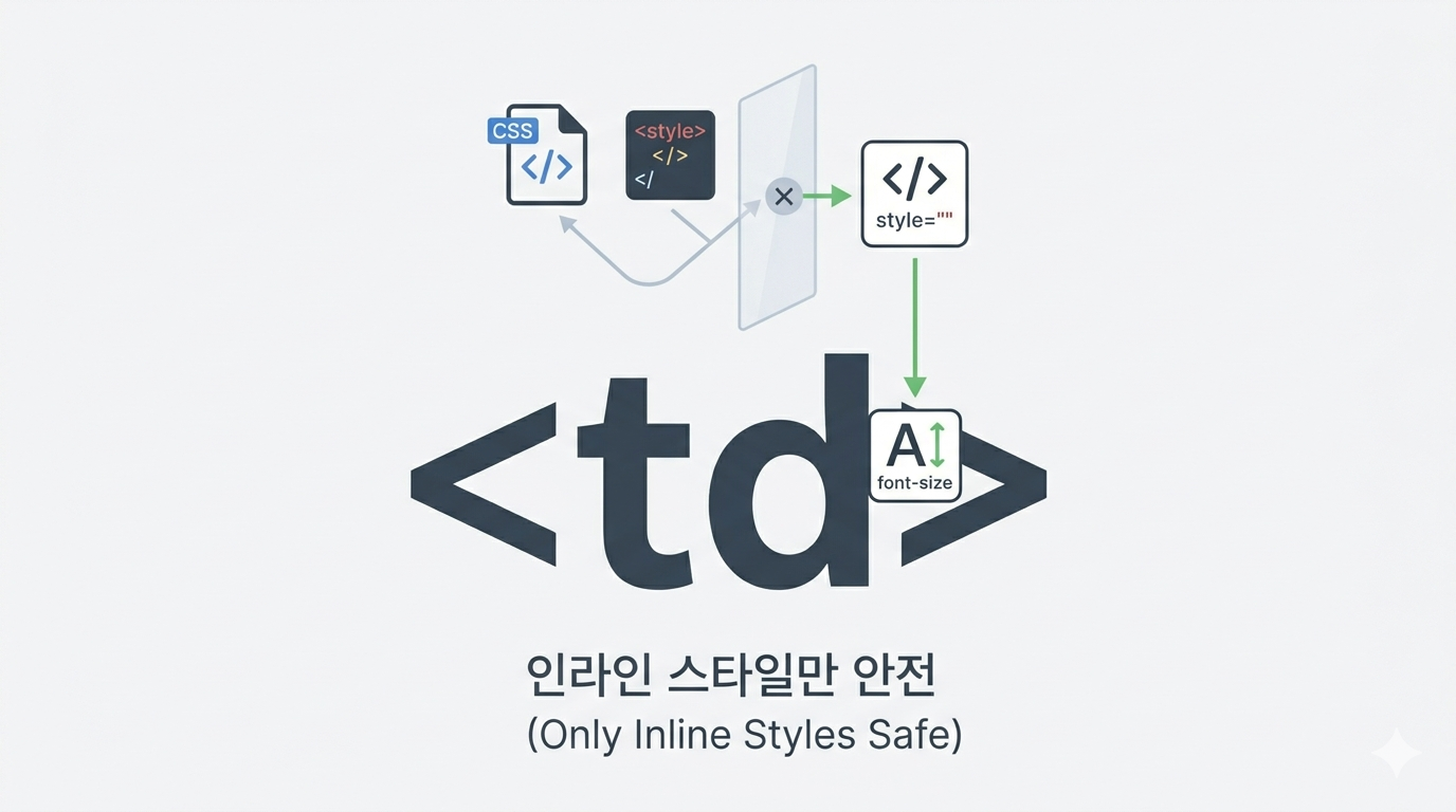 - <style> 태그 → 일부 메일 클라이언트에서 제거되거나 제한적으로만 적용