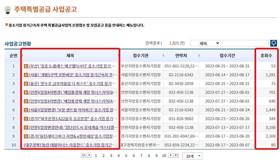 사업공고 현황에 올라와 있는 리스트는 전국에서 분양되고 있는 예정단지입니다. 이미 접수기간이 지난것도 있고 접수가능한 물건도 있습니다. 현황리스트의 가장 우측의 조회수를 보면 사람들의 관심이 어느 아파트에 몰리는지 알 수 있겠네요.