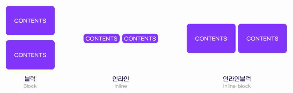 또한, 블럭요소에서는 width, height, margin, padding 등을 사용하여 컨텐츠가 가지는 영역의 너비, 여백 값 등을 수정할 수 있습니다.